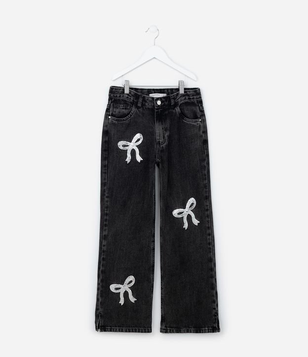 Calça Wide Leg Infantil com Laços Bordados em Paetês - Tam 5 a 14 Anos