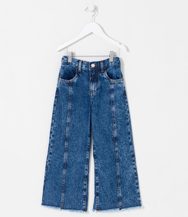 Calça Wide Leg Infantil em Jeans com Recortes e Barra Desfiada - Tam 5 a 14 anos