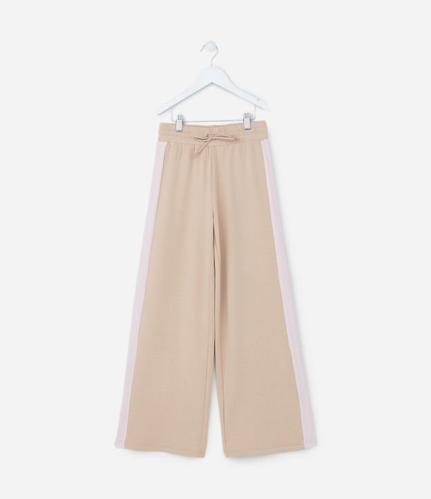 Calça Wide Leg Infantil em Modal com Listra Lateral - Tam 5 a 14 Anos Bege