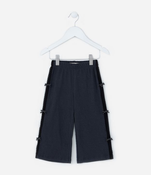 Calça Wide Leg Infantil Texturizada com Lacinhos- Tam 1 a 6 Anos Cinza Escuro