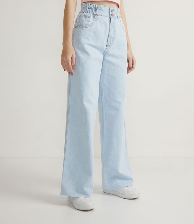 Calça Wide Leg Jeans com Elástico na Cintura e Corte a Fio na Barra
