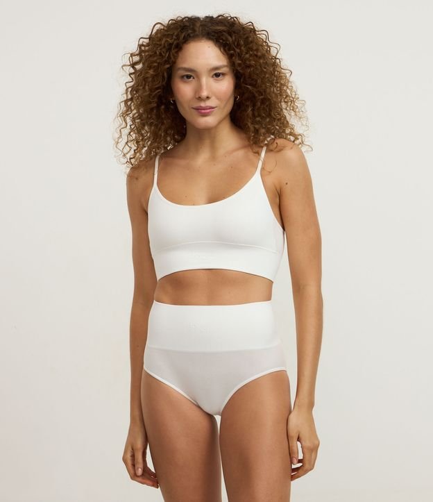 Calcinha Alta em Poliamida Seamless Canelada Branco