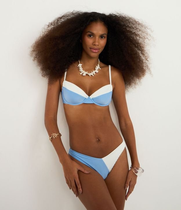 Calcinha Biquíni Asa Delta em Microfibra com Efeito Empina Bumbum Azul/Branco