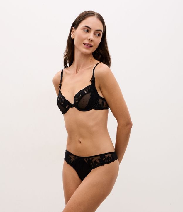 Calcinha Biquíni em Tule com Bordado Floral Preto