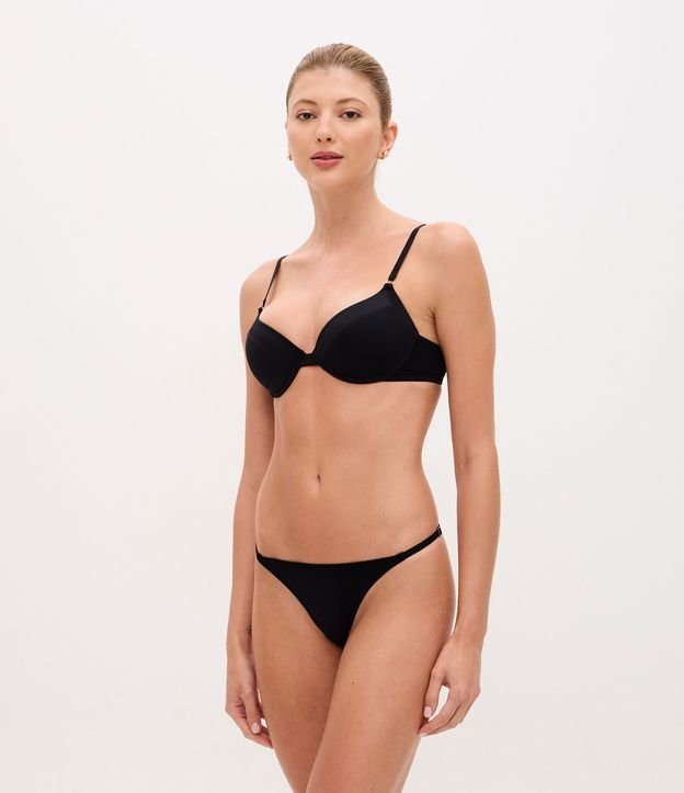 Calcinha String Brilhante com Fio Duplo em Microfibra Preto