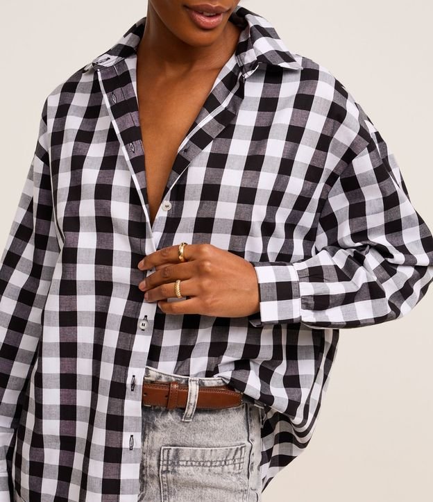 Camisa Alongada em Algodão Xadrez com Abotoamento Preto/Branco