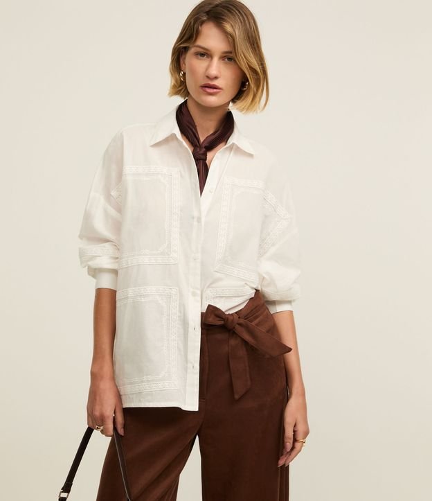 Camisa Alongada em Cambraia com com Bordados Decorativos