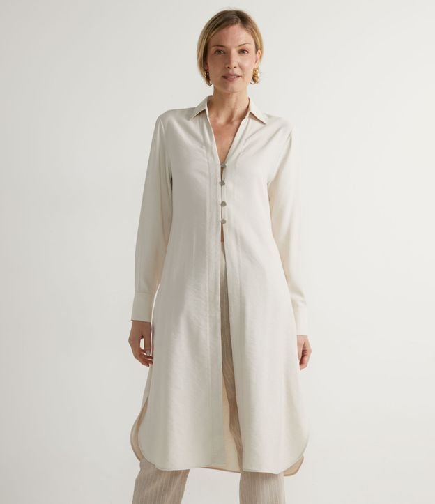 Camisa Alongada em Crepe com Abertura Frontal