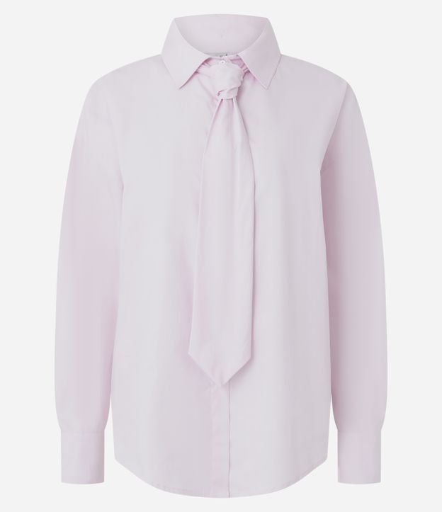 Camisa Alongada em Tricoline com Gravata Rosa