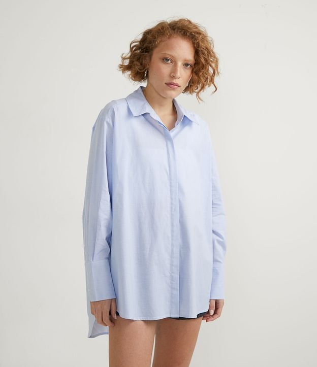 Camisa Alongada em Tricoline Listrada com Lettering Lucky nas Costas