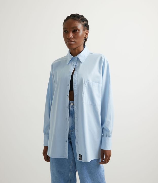 Camisa Alongada em Tricoline Sem Estampa Oversized