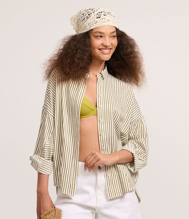 Camisa Amassadinha com Esta de Listras e Texturizada Verde