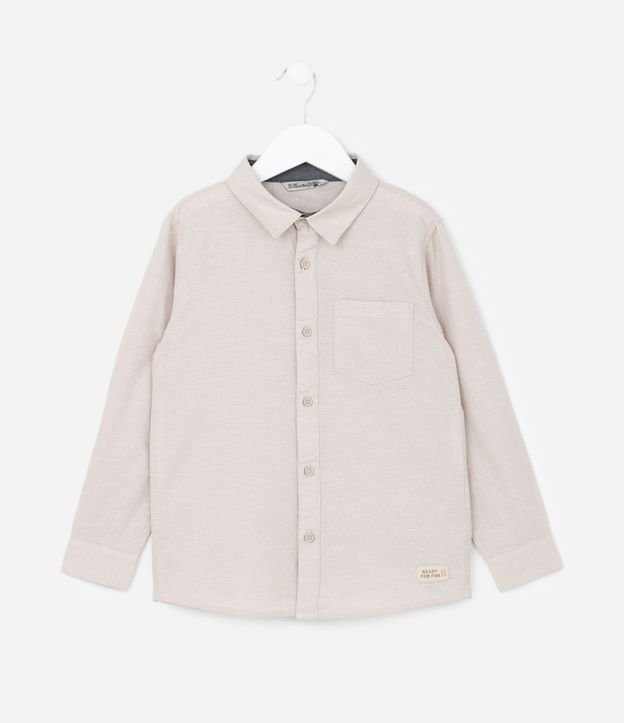 Camisa infantil confeccionada em oxford com gola colarinho, bolsinho e manga longa ajustada.