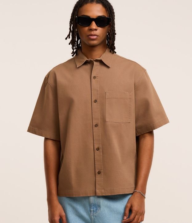 Camisa Boxy em Algodão com Bolso Texturizada Marrom