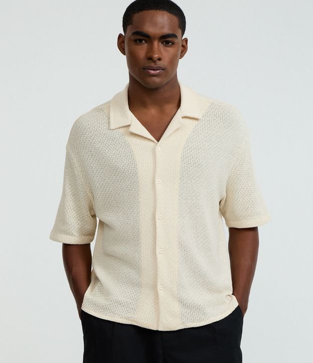 Camisa Boxy em Algodão com Efeito tricô Bege