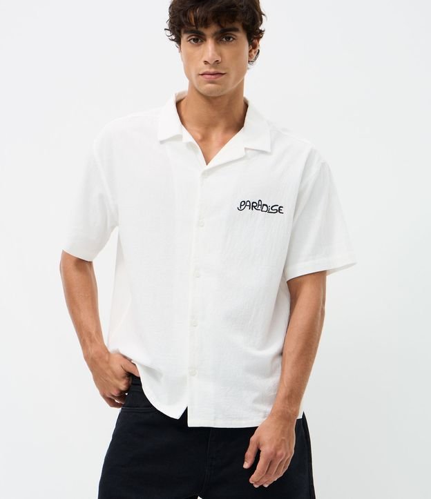 Camisa Boxy em Algodão Texturizado com Estampa Paradise Branco