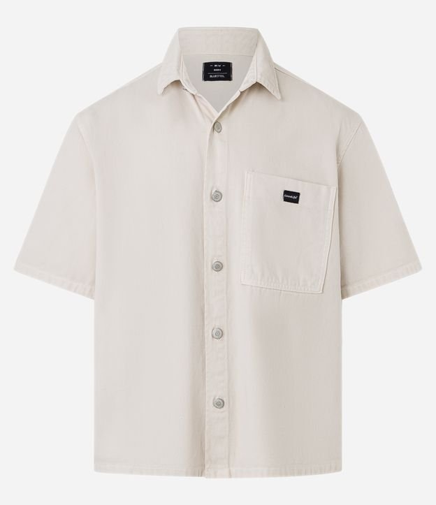 Camisa Boxy em Sarja Estonada com Bolso no Peito Bege