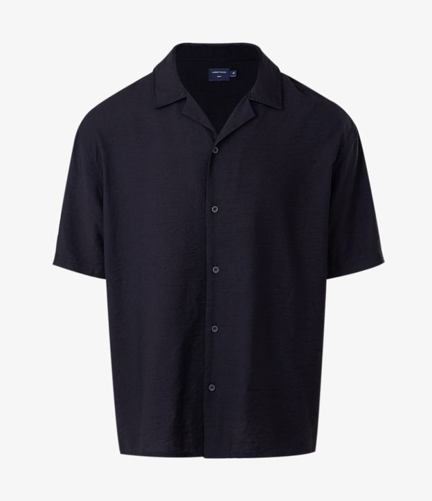 Camisa Boxy em Viscose Texturizado e Gola Bowling Preto