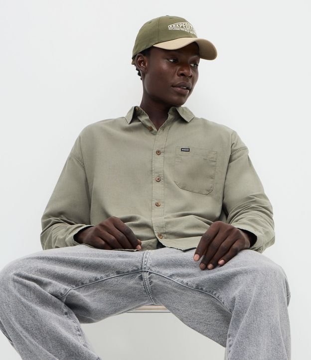Camisa Boxy Manga Longa Lisa em Cânhamo Verde