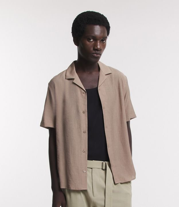 Camisa Boxy Texturizada com Gola Bowling Bege