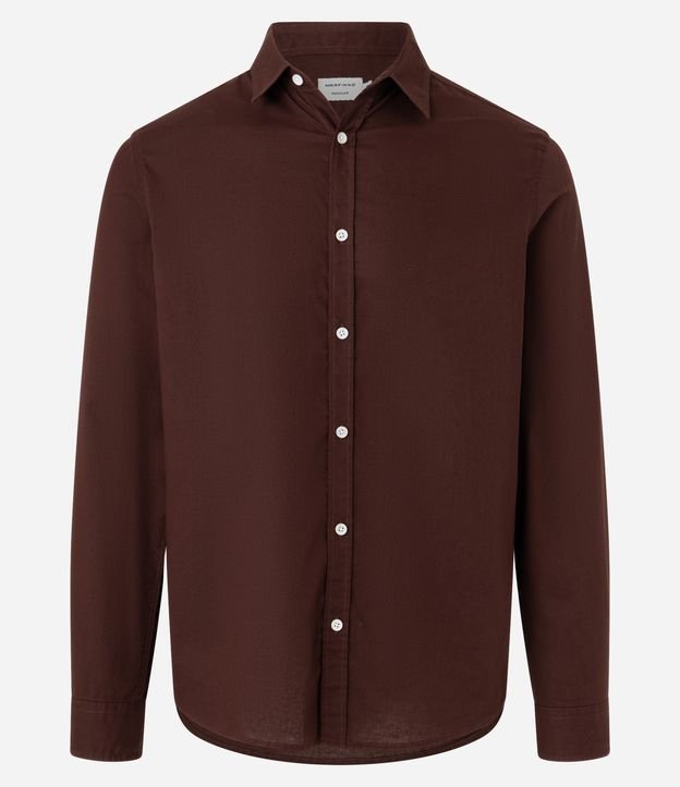 Camisa masculina de modelo comfort, confeccionada em linho com algodão, com gola tradicional e mangas longas. Possui fechamento frontal com botões.