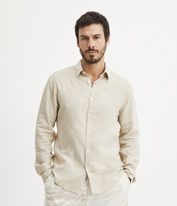 Camisa Comfort Básica em Linho Texturizado com Manga Longa