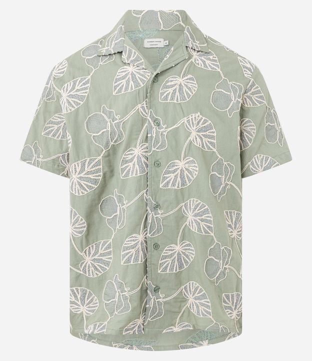 Camisa Comfort em Algodão com Bordado em Folhas Verde