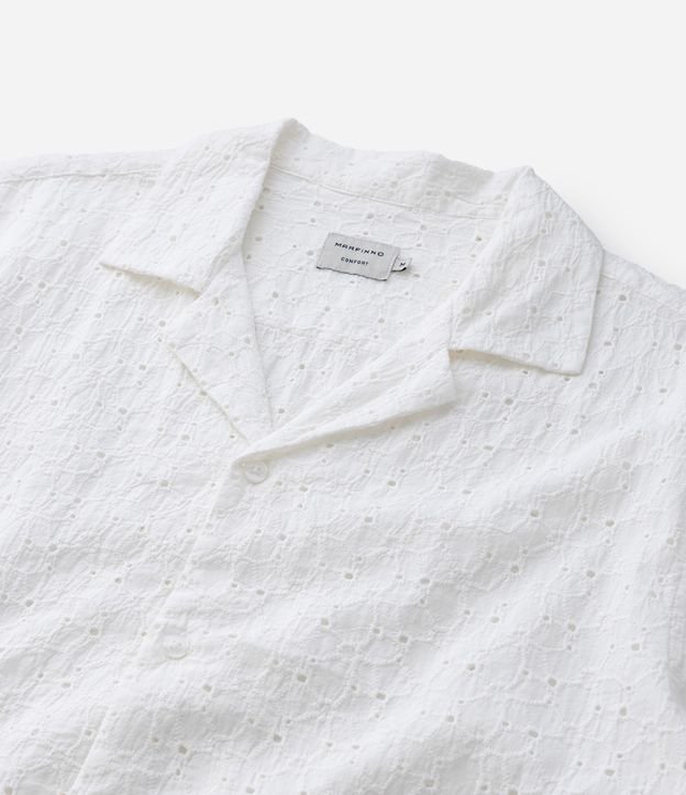 Camisa Comfort em Algodão com Textura e Laise Florida Branco
