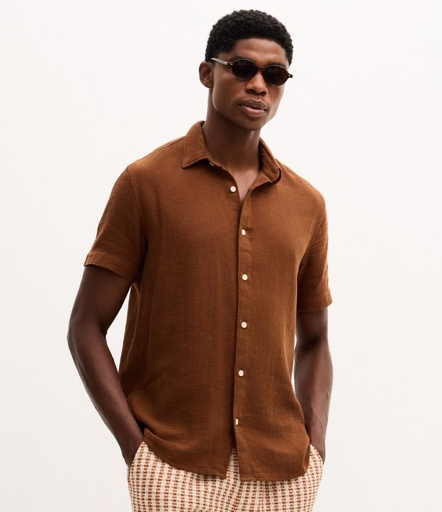 • Camisa Comfort em Algodão com Textura Marrom 1