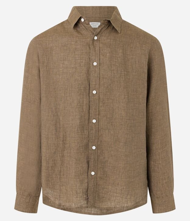 Camisa Comfort em Linho Puro com Gola Colarinho Marrom