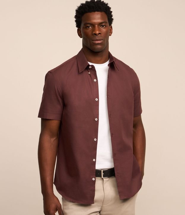 Camisa Comfort em Oxford com Gola Colarinho e Manga Curta Vermelho