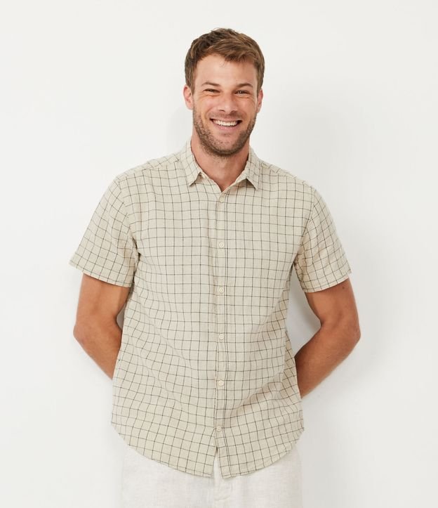Camisa Comfort Manga Curta em Linho com Estampa Xadrez