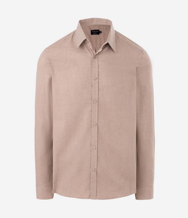 Camisa em Algodão com Botões Frontais e Efeito Mescla Bege