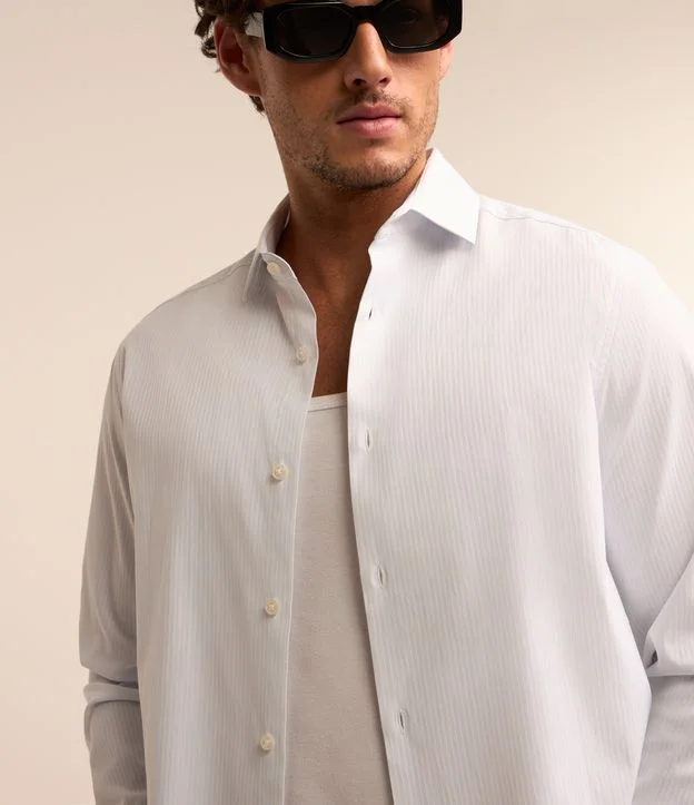 Camisa manga longa maquinetada com textura em listras. Peça confeccionada pensando em quem busca por uma opção confortável e super versátil para complementar os seus visuais diários.