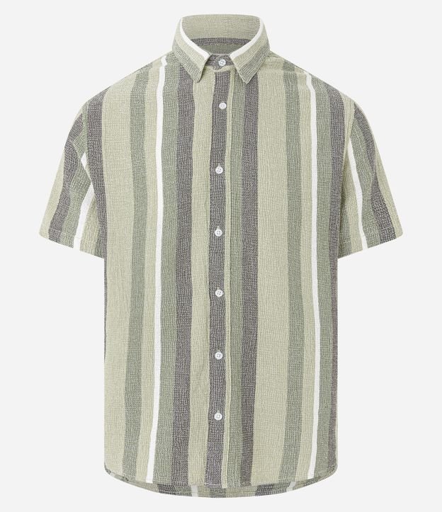 Camisa em Algodão Texturizada com Listras Verde/Cinza/Branco