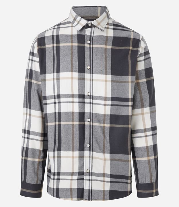 Camisa em Flanela com Estampa Xadrez e Abotoamento Cinza