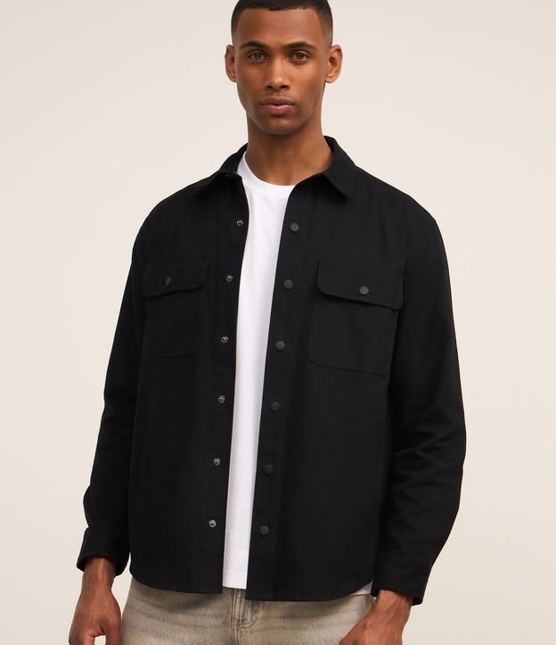 Camisa em Sarja com Botões e Bolsos Preto