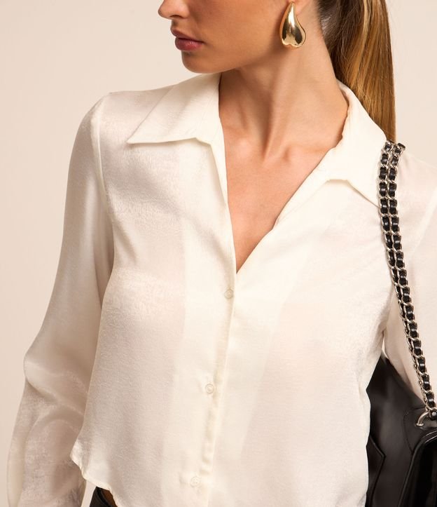 Camisa em Tecido Acetinado com Texturas Branco
