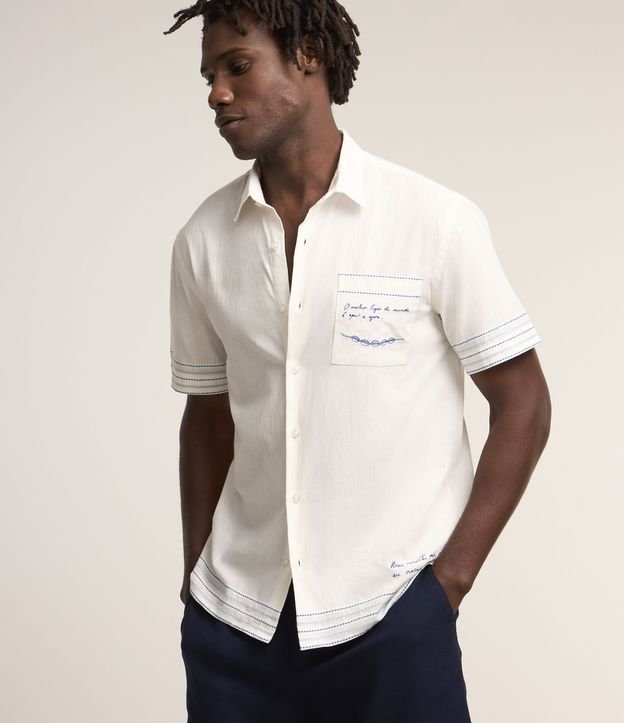Camisa em Tricoline com Bordado Meu Caminho eu Mesmo Traço Gilberto Gil Branco