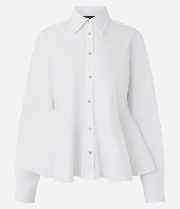 Camisa em Tricoline com Gola Colarinho e Detalhe Peplum Branco