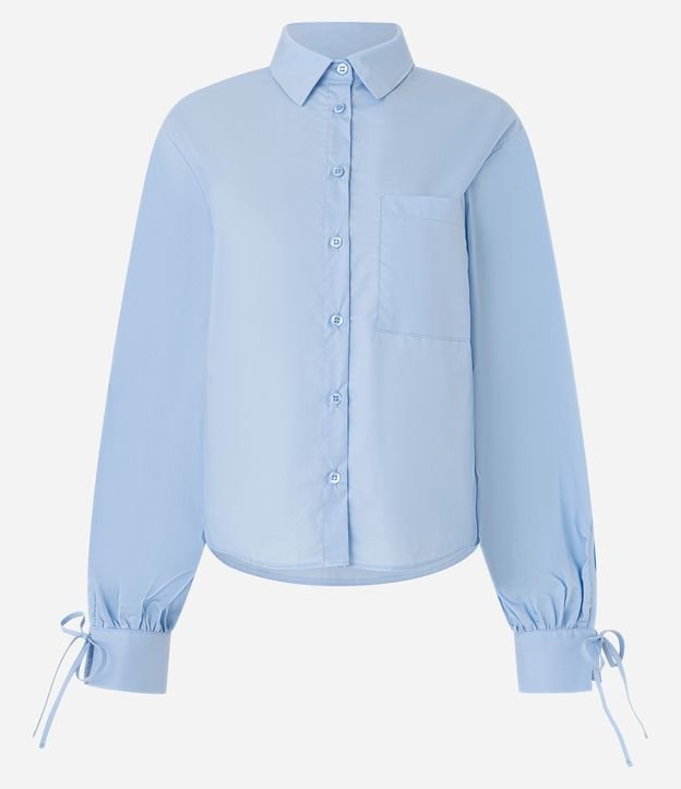 Camisa em Tricoline com Lacinhos na Manga Azul