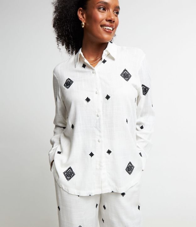 Camisa em Viscolinho com Abotoamento Frontal e Bordados