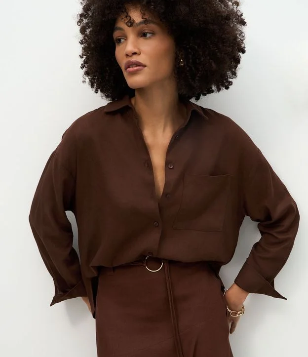 Camisa em Viscolinho com Fechamento por Botões Marrom