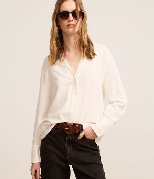 Camisa em Viscolinho com Gola Padre Branco