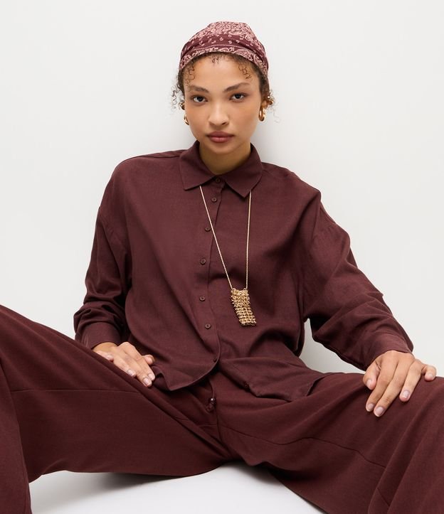Camisa em Viscolinho com Manga Longa e Abotoamento Marrom