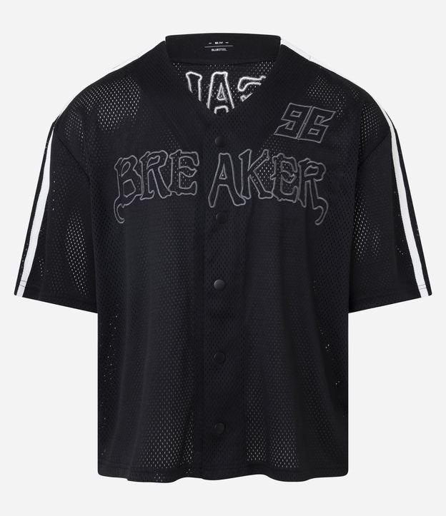 Camisa Esportiva em Textura Mesh com Bordado Breaker Preto