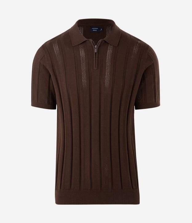 Camisa Gola Polo com Zíper em Algodão Texturizada Marrom