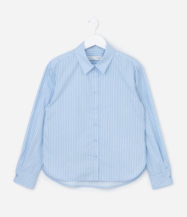 Camisa Infantil Alfaiataria em Tricoline Listrado com Brilhos – Tam 5 a 14 Anos Azul Claro
