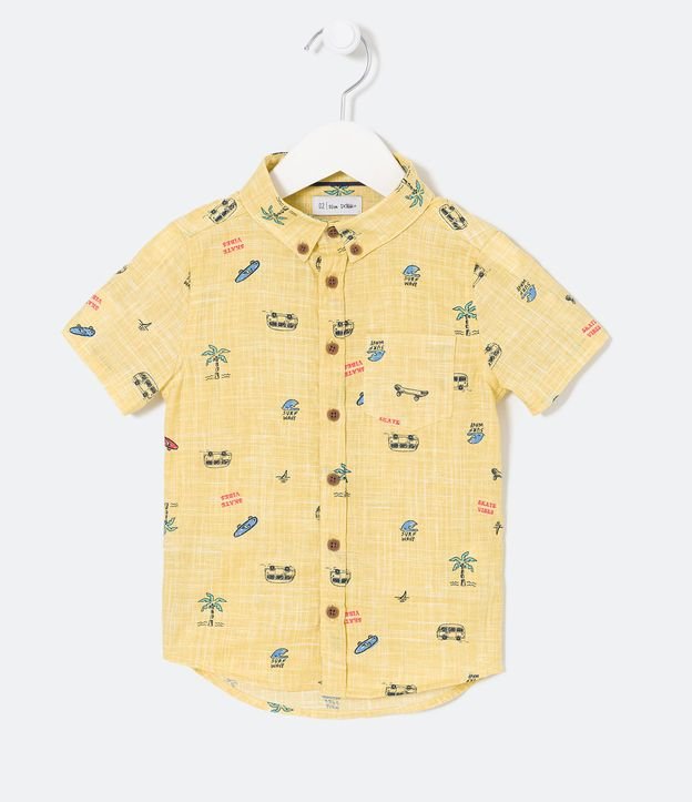 Camisa Infantil com Estampa Ícones de Praia - Tam 1 a 5 anos