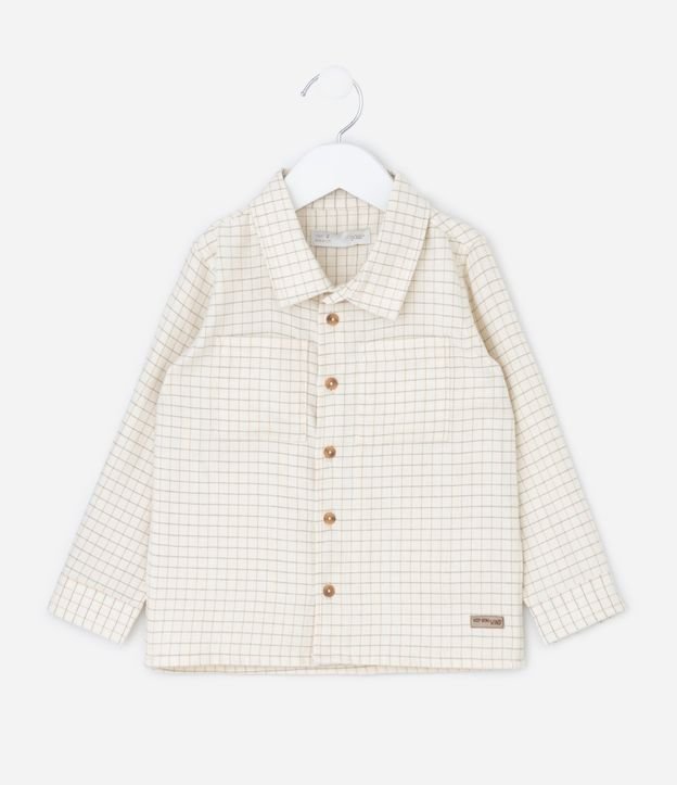 Camisa Infantil em Flanela Xadrez com Bolsos – Tam 1 a 6 Anos Bege Claro